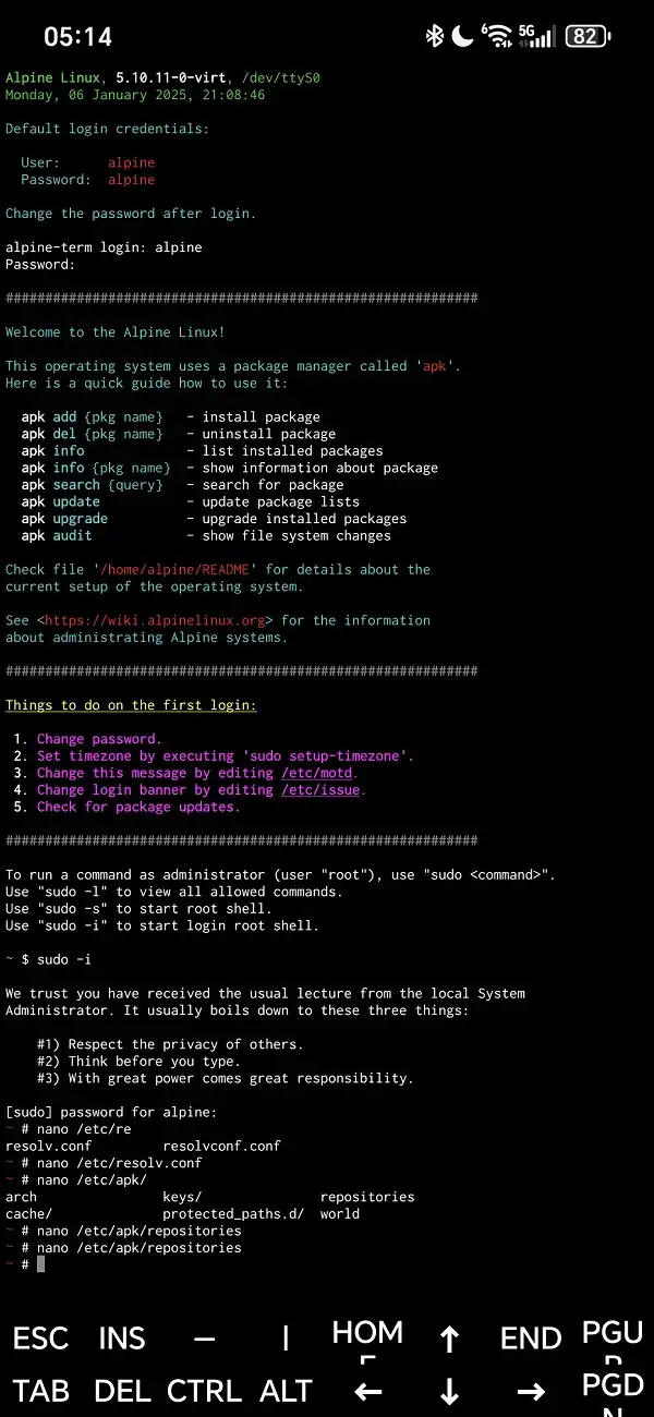 termux-qemu-alpine,一步一步安装,才是真正的linux。有人把Termux+Qemu+Alpine整合好了,名为alpine-term,开箱即用,安装一个apk打开就是配置完全的alpine linux。