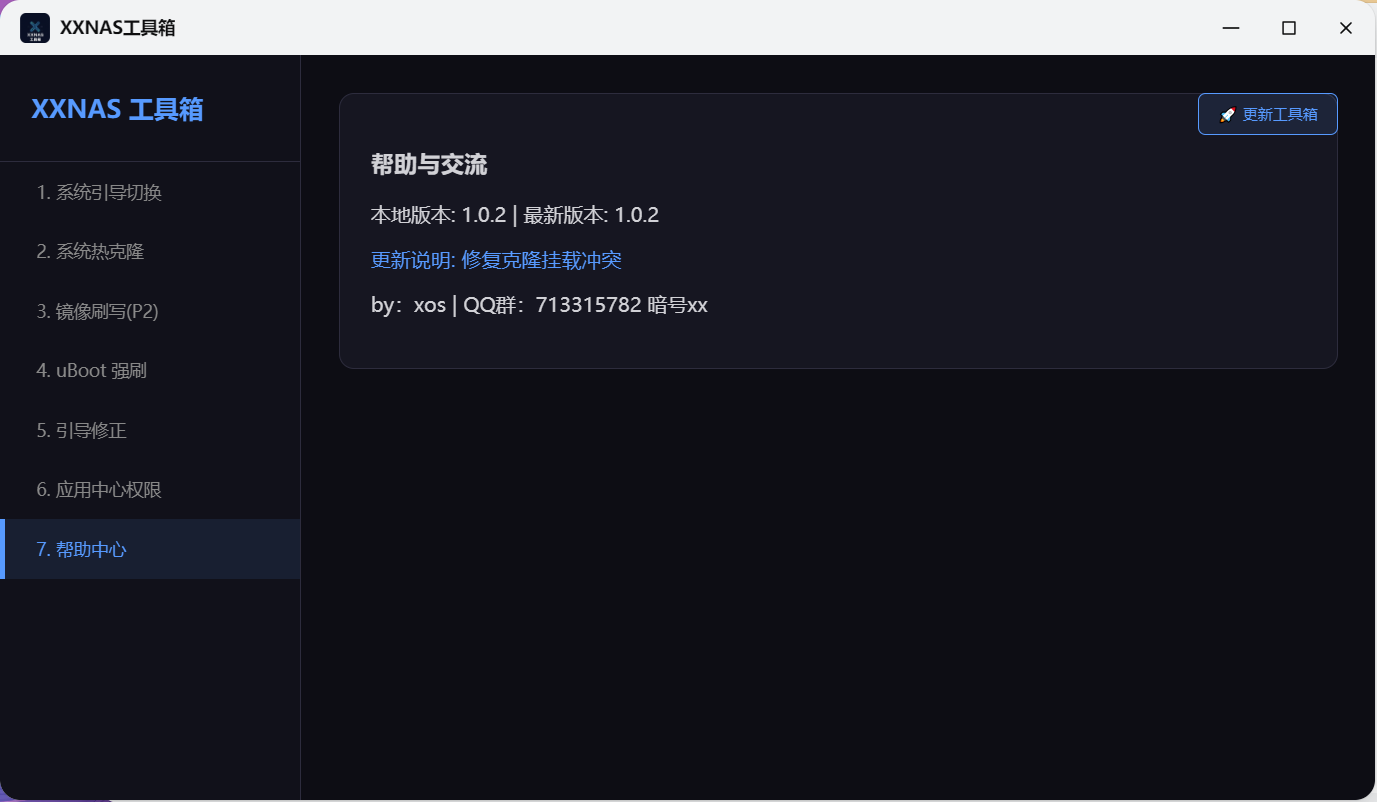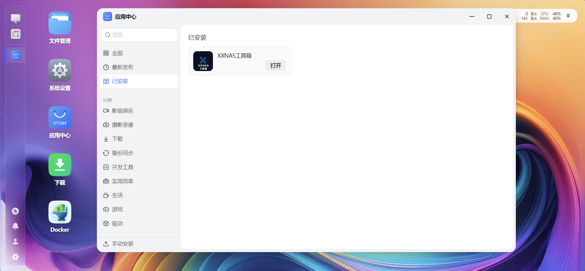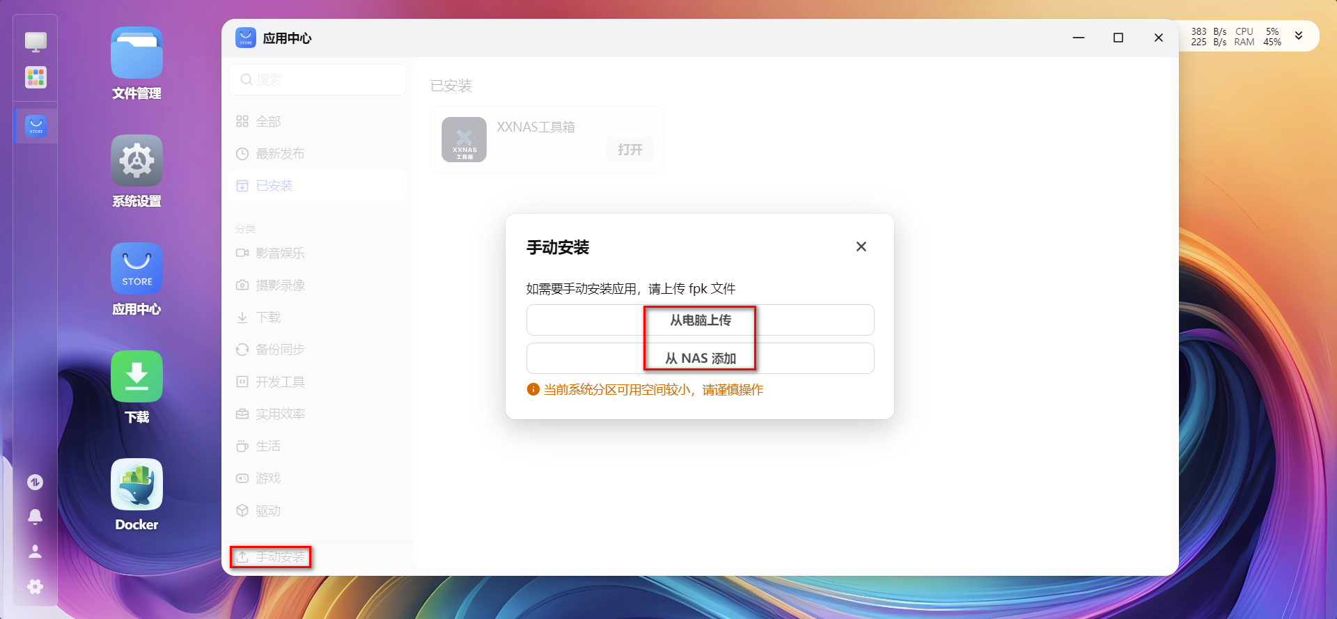 下载XXNAS工具箱离线安装包,手动安装。点击下载