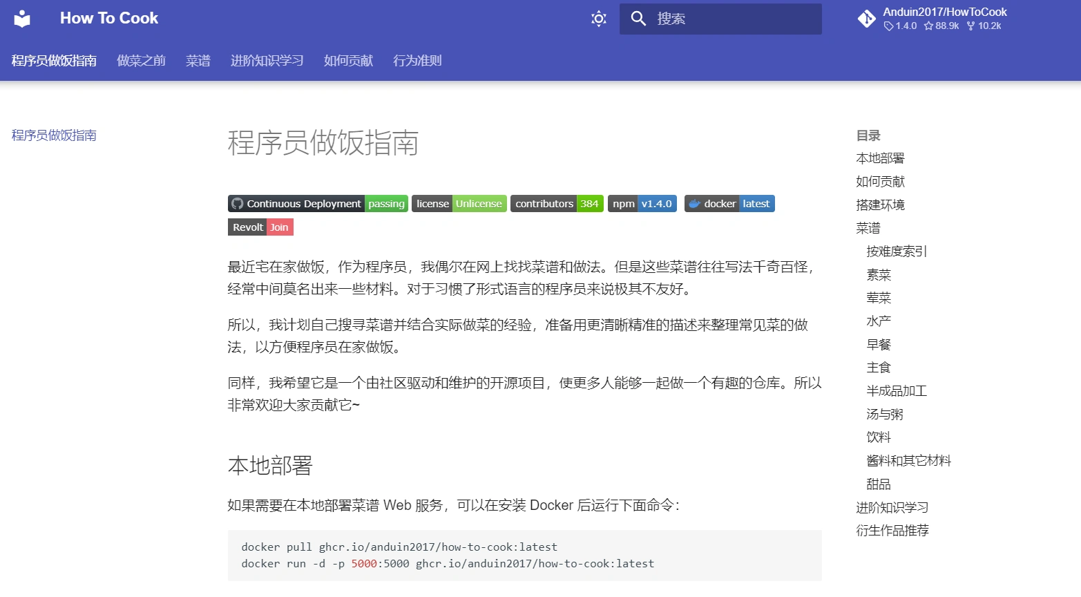 程序员做饭指南是一个开源项目,一个菜谱 Web 服务。