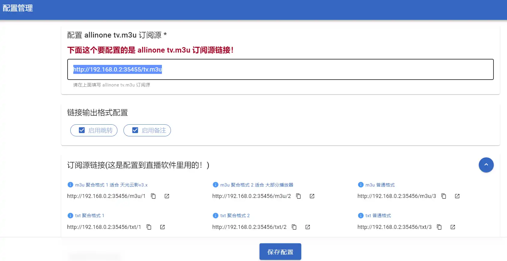 访问ip:35456,IPTV源地址:http://192.168.0.2:35456/m3u/2