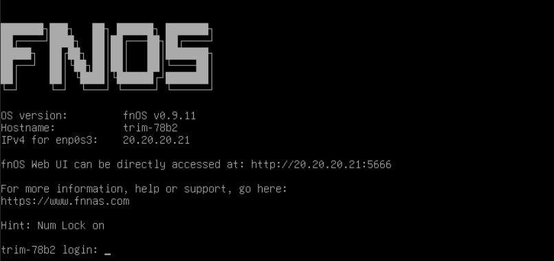 安装完成后从ip:5666访问飞牛os。这里的ip是192.168.0.10,可根据需要更改。
