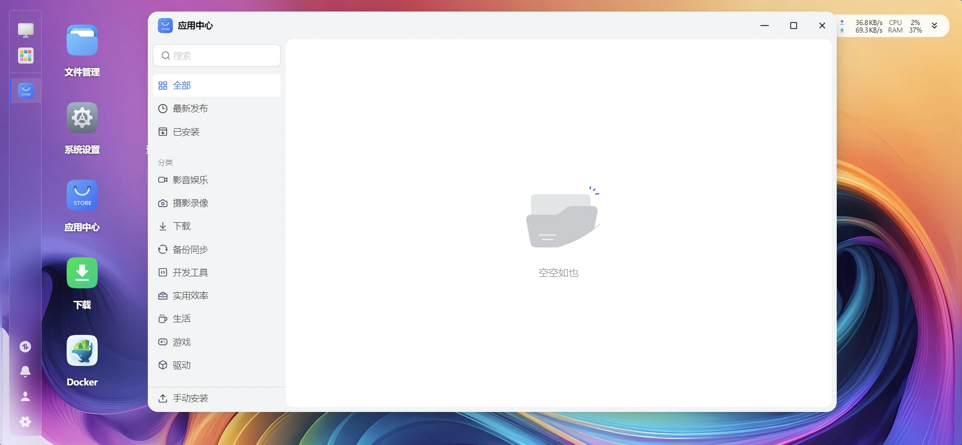 由于arm fnos还在内测中,应用商店目前需要审核接入,所以是空白的。