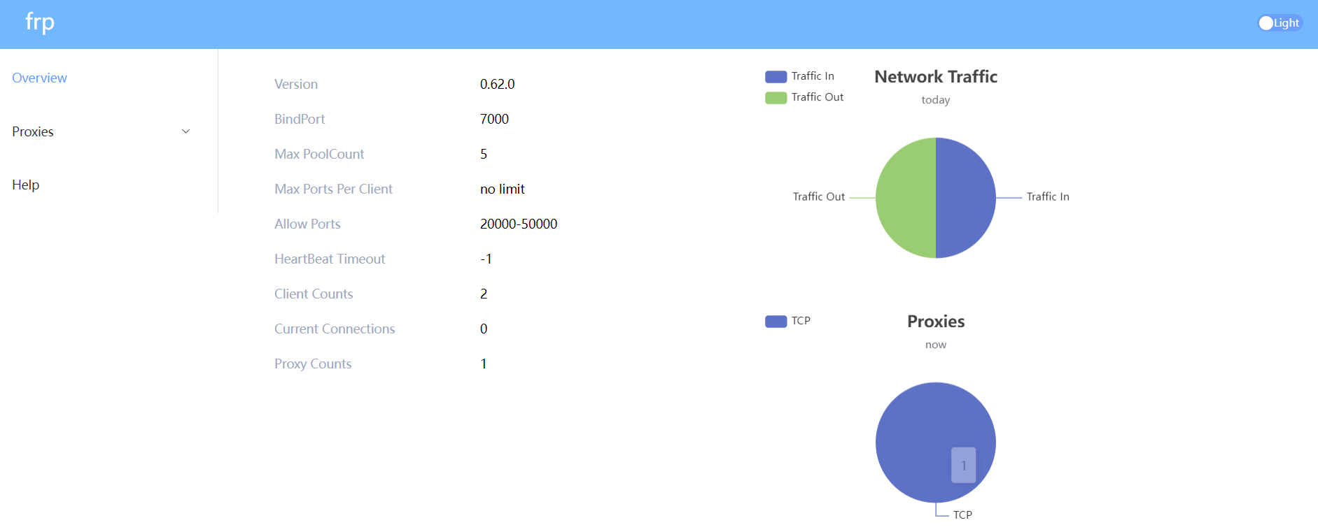 通过在具有公网 IP 的节点上部署 frp 服务端,可以轻松地将内网服务穿透到公网,同时提供诸多专业的功能特性。