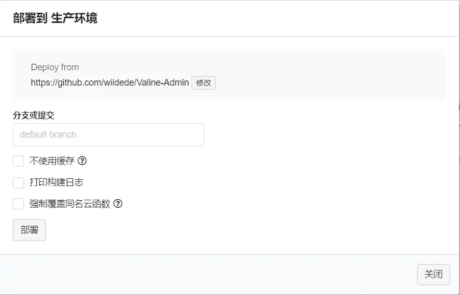 点git部署,地址:https://github.com/wiidede/Valine-Admin,分支填master,点部署。