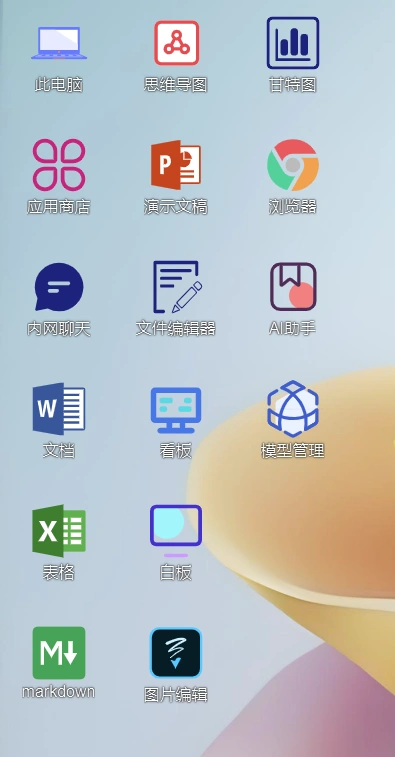 GodoOS是一款高效的内网办公操作系统,内含word/excel/ppt/pdf/内网聊天/白板/思维导图等多个办公系统工具,支持原生文件存储。平台界面精仿windows风格,操作简便,同时保持低资源消耗和高性能运行。无需注册即可自动连接内网用户,实现即时通讯和文件共享。灵活高配置的应用商店,可无限扩展。