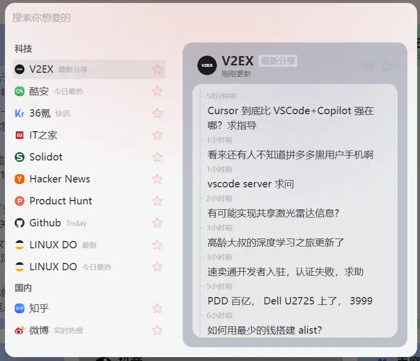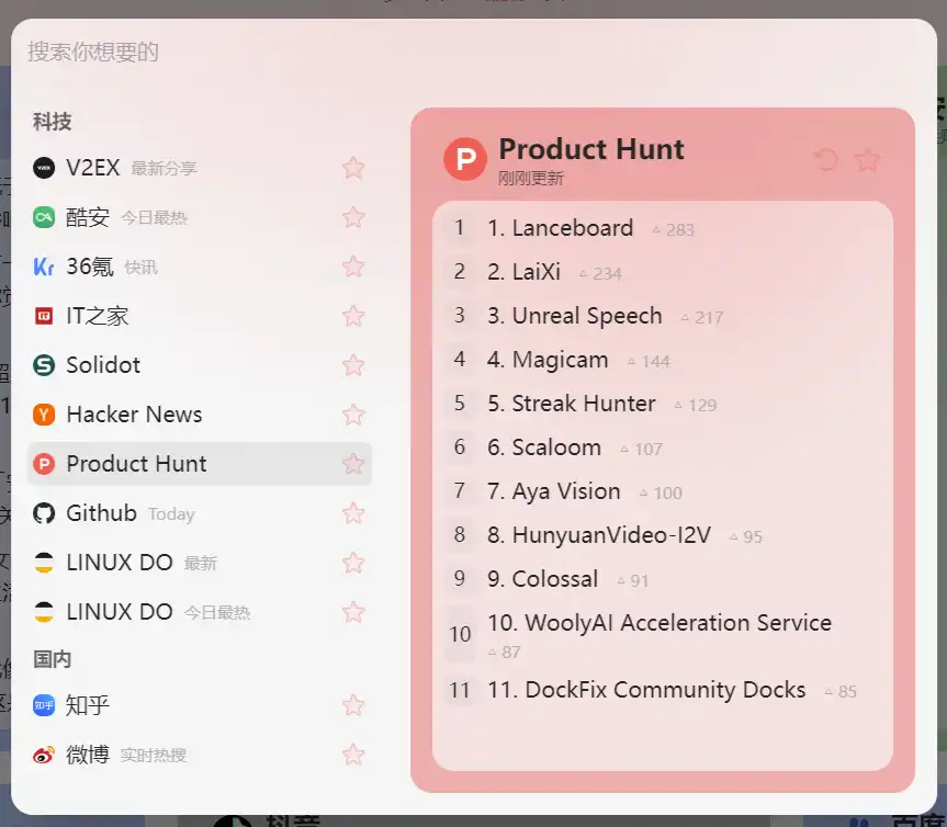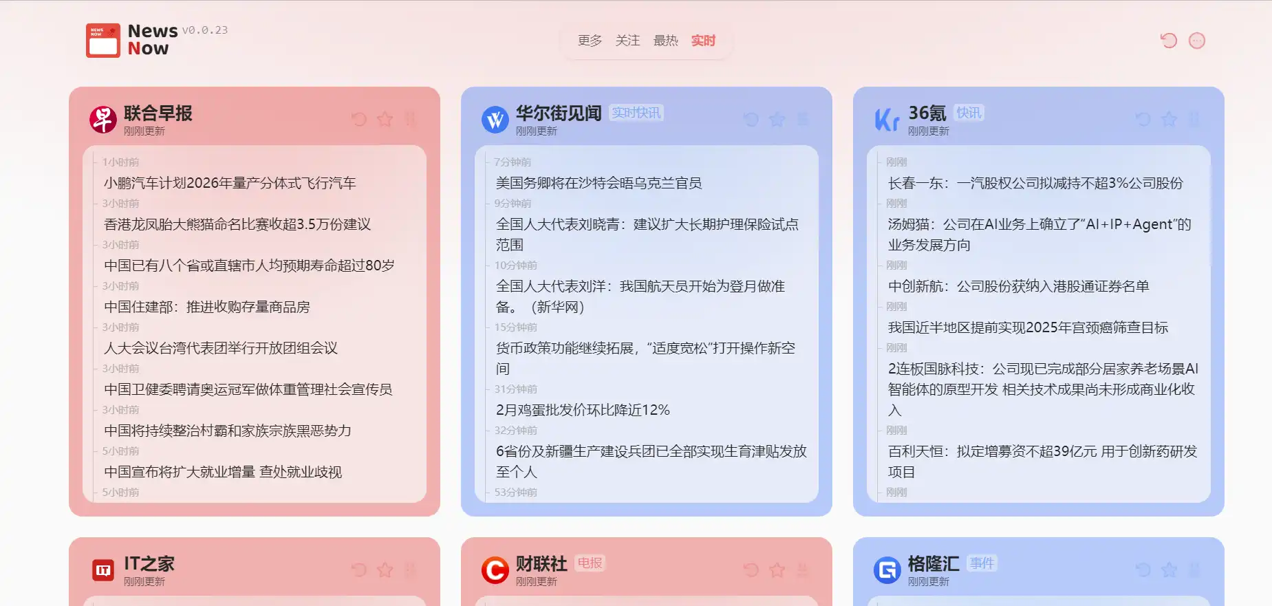 newsnow本质是一个爬虫,但是整个UI画面设计得非常时尚,热点新闻来源也非常多。