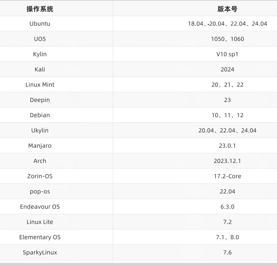 支持的linux版本: